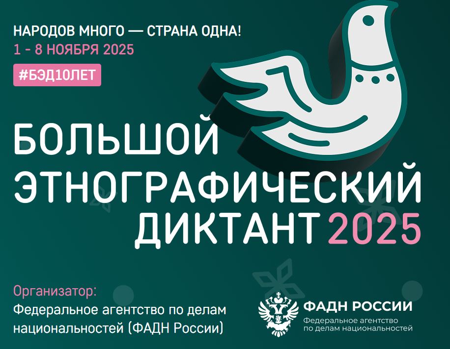 «Народов много – страна одна!» — под таким лозунгом состоится Юбилейная X Всероссийская просветительская акция «Большой этнографический диктант», в которой мы приглашаем всех принять участие.